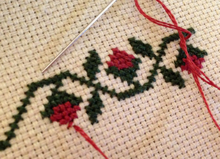 The photo shows the very beginnings of my newest stitch, but this small progress is all my hands would allow for one sitting. At this rate it will take forever, so it’s a good thing I have lots of time for this one.