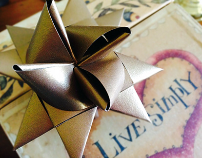 Folded-StarOver the years, my eldest sister has gifted many of her friends and family with her handcrafted white, red and green German folded paper stars for their Christmas trees, so I was delighted when I learned that she has also decided to make golden stars to add to the table decorations at her daughter’s upcoming August wedding. The gold stars are designed to complement my niece’s choice of wedding colors.